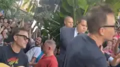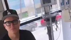 Mark Hoppus, do blink-182, toca violão com fãs na porta do hotel em São Paulo. Veja!